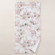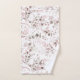 Delicate, foliage arrangements with small flower accents in soft, dreamy shades of cream, taupe and rose gold with splashes of glitter and faux-foil corner frames, form the background pattern for this elegant towel set design. See ID817 to see additional products with design, including matching wedding stationery.