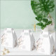 Delicate, foliage arrangements with small flower accents in soft, dreamy shades of cream, taupe and rose gold with splashes of glitter, and unique design layouts make this an exciting collection, especially for spring weddings. The wedding favour box shown here features airy foliage arrangements angled across the design and the bride and groom's names and wedding date. View the collection link on this page to see all of the matching items in this beautiful design or search ID817 to see other pieces and colour choices for this set.