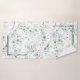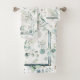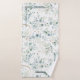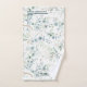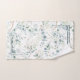 Delicate, foliage arrangements with small flower accents in soft, dreamy shades of green, gold and dusty blue with splashed of glitter and faux-foil corner frames, form the background pattern for this elegant towel set design. See ID817 to see additional products with design, including matching wedding stationery.