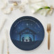 Jesus is the reason for the season Christmas nativity plate features a nativity scene under a dreamy glowy blue starry sky.