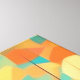 Escape to a world of tranquillity with this mesmerising landscape painting. Lush green hills and a serene lake are bathed in the warm glow of a radiant sunset. Playful geometric shapes dance across the canvas, adding a touch of whimsy to this dreamy scene. This artwork is perfect for anyone who loves to add a pop of colour and a touch of modern flair to their home.