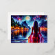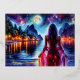 Dreamy ocean beach girl with moon and lights foil holiday postcard