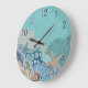This beautiful clock has starfish, sea shells, corals, sand dollars and sea-fans in colours of blue and turquoise. A perfect addition to any room for those that love the ocean.
