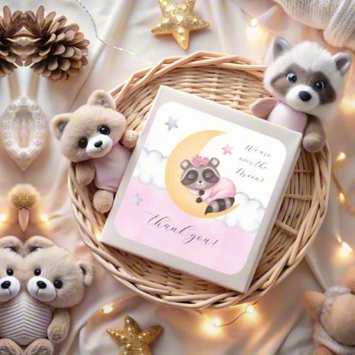 Dreamy Over the Moon Racoon Girl Baby Shower Save The Date