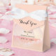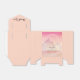 A favour box with a lovely charming illustration. Pastel colours of pink and peach. Landscape scene with planets, mountains and clouds.