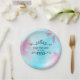 Dreamy Pink Palm Trees Blue Sky String Lights Paper Plate