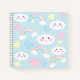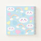 A dreamy pastel blue kawaii clouds and rainbow design.