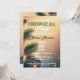 This customisable tropical party invitation exudes a vibrant and elegant graphic style. Against a warm, golden sunset backdrop with bokeh light effects, lush green palm leaves adorn the top, setting the tropical theme. The text is fully customisable. Perfect for milestone birthdays or any tropical-themed celebration!