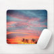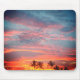 A heavenly snapshot of a tropical sunset with streaks of blues and pinks dancing across the sky along firey orange sunrays with a group of silhouetted palm trees. Inspirational dreamy bliss