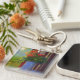 This beautiful keychain features an impressionistic work of art with wildflowers in a blue vase on a front porch.