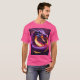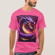 I give wanted to give this a 4 instead of a 5 because these Basic DARK T0shirts run unexpectedly SLIM or Narrow. Which is great if you do not have a potbelly, but I have a paunch. It isn't the shirt's fault that I've got a beer belly. The design and shirt itself is a quality cotton shirt. The color is more of a deep purple, but still a very pretty color. The Basic DARK T-shirts run a bit SLIMMER than the Basic Ts. The neck is a fraction narrower (or seems to be narrower) also. I'm a paunchy middle-aged woman and my neck is 12 inches (31cm) thick and the neckline fell about the same as in the photo of the man, and I had the desire to tug it a bit. So if you're a thick necked man or like loose shirts, be aware these are slimmer shirts. Once I get rid of my lockdown paunch it'll look great. The shirt washed well in cold water with no apparent bleeding. We don't have a dryer, so it hung dry. Did not shrink. Love the colors and the design. The design looks smaller on my shirt than it does on the model on-line. But still, it looks good on the shirt. The printing looks as it does on the model, just the size seems fractionally smaller. Washed garment in cold water, hung dry and design appeared unaffected.