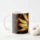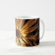 This mug features an abstract interpretation of a dried ageratum seed head. The lovely blue purple flowers are gone, the seeds have scattered, and this shell is all that remains. The impressionistic pattern is a lovely contemporary display with autumn colours of brown, yellow, gold, orange and black.