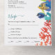 Tropical watercolor dried flowers, palm leaves and pampas grass fall all in one wedding invitation. It displays an arrangement of dried palm leaves, protea and rose flowers and pampas grass along the right side.
