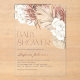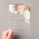 This acrylic baby shower invitation features a boho floral design with watercolor white orchids, dried palm leaves, and pampas grass. The transparent acrylic adds a unique and modern touch, perfect for earthy or neutral-themed celebrations. The soft colour palette and nature-inspired layout on this boho baby shower invitation work well for gender-neutral baby showers. It's a great choice for indoor or outdoor events. All text can be customised to match your event details.
