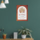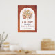 Tropical dried palm leaves, pampas grass and protea flowers terracotta arch botanical welcome wedding poster. This lovely wedding design features an arch frame on terracotta stained background. In the frame there is your text, a bouquet of dried palm leaves, protea flowers and pampas grass.