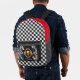 This back-to-school backpack is perfect for a student who loves race cars, and drifting racing. The design features cars drifting on a race track, a racing trophy, and racing flags. Personalise the backpack with your name or add a short custom text.
