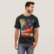 I give wanted to give this a 4 instead of a 5 because these Basic DARK T0shirts run unexpectedly SLIM or Narrow. Which is great if you do not have a potbelly, but I have a paunch. It isn't the shirt's fault that I've got a beer belly. The design and shirt itself is a quality cotton shirt. The color is more of a deep purple, but still a very pretty color. The Basic DARK T-shirts run a bit SLIMMER than the Basic Ts. The neck is a fraction narrower (or seems to be narrower) also. I'm a paunchy middle-aged woman and my neck is 12 inches (31cm) thick and the neckline fell about the same as in the photo of the man, and I had the desire to tug it a bit. So if you're a thick necked man or like loose shirts, be aware these are slimmer shirts. Once I get rid of my lockdown paunch it'll look great. The shirt washed well in cold water with no apparent bleeding. We don't have a dryer, so it hung dry. Did not shrink. Love the colors and the design. The design looks smaller on my shirt than it does on the model on-line. But still, it looks good on the shirt. The printing looks as it does on the model, just the size seems fractionally smaller. Washed garment in cold water, hung dry and design appeared unaffected.
