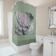 This shower curtain features an echeveria succulent on a soft green backgound.