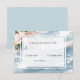 Watercolored ocean blue sky, and dusty peach floral bouquet coordinate with the driftwood arbor invitations. A soft, artistic design for any coastal or beach themed wedding.