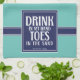 "Drink In My Hand Toes In The Sand" Quote in Light Teal White and Navy Blue Design . Modern Decor for your Beach House, Vacation Rental. Perfect for the Boat or by the Pool. You can change the background colours to customise to match your home and lifestyle. Change the name to your favourite Beach Town, Family Name, or Beach, Lake House or Cottage Name.
