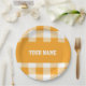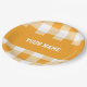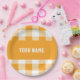 Cool yellow Gingham or Chequerboard Pattern. Click personalise and change the text to a name or word.