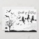 Join us for a wickedly good time at our adult Halloween party! Our theme is "Drink Up, Witches!" and the invitation sets the perfect tone with black silhouettes of an old tree, pumpkin, spider, and flying bats. Watch out for the three witches on their trusty broomsticks! The modern invitation template is set against a clean white background, making it the perfect invite for a girls' night this Halloween. Don't miss out on the fun!
