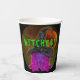 Drink Up Witches Paper Cups Halloween party table decor. Design features a nocturnal scene of an unusual witch with pink hair and green eyes. The blood moon shining from behind give her a creepy orange glow. Part of the Halloween Witch Collection. The wording can be changed as desired by using “Personalise this template” or the “Edit design” tabs. By using the “Edit Design” tab you can change the font style, size and colour. Happy Halloween!