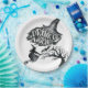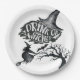 This cute "Drink up witches" halloween paper plate features a flying witch on a broom, spooky tree, bat, ghost, and grave/tomb on a white background. Personalise it for your needs. You can find matching products at my store.