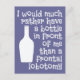 "I would much rather have a bottle in front of me than a frontal lobotomy". Using the "customise it" function, you can change (edit) the background colour of this item and add your own text if you wish. See my store for more items with this design.