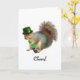 Irish squirrel in a green hat drinking beer to celebrate Saint Patrick's Day. Fun card.