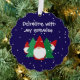 Drinking with my gnomies funny Christmas Ornament Card . Add your own humourous quote and name optionally. Fun winter troll cartoon design with customisable background colour. Includes ribbon to hang up in tree.