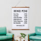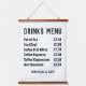 Wall Hanging Drinks Menu price-list for a cafe or restaurant. Alter prices as you wish. Displays up to 6 items and prices. Wall Hanging price-list. Black and white.
