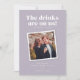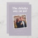 This funny wedding save the date card features the phrase "The drinks are on us - the hangover is on you" - sure to give your guests a laugh and a preview of the fun wedding party they won't want to miss. Customise it! Change the colours and fonts to match your wedding style!