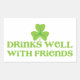 DRINKS well with friends shamrock clover leaf Rectangular Sticker