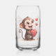 Drinkware Set Monkey Love Red Hearts Can Glass