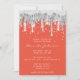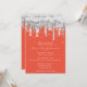 Drip Glitter Bridal Wedding Silver Grey Orange Invitation