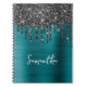 Dripping Black Glitter Blue Teal Glam Name Notebook