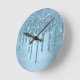 Dripping Ice Glitter | Blue Faux Sparkle Metallic Round Clock