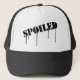 The word "Spoiled" is stencilled roughly on a hat and drips down the front. Have a laugh and get spoiled.