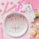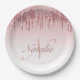 dripping pink and rose gold sparkling glitter paper plate