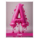 Striking 3D design featuring a glossy pink letter 'A' with a mesmerizing liquid drip effect. Perfect for nursery decor, kids' rooms, or any space needing a pop of pink personality. Customize with any name above the letter for a unique, personalized touch. The high-quality rendering shows beautiful light reflections and dimensional depth in vibrant pink tones against a soft gradient background.