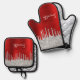 Dripping Silver Glitter Red Glam Name Oven Mitt & Pot Holder Set