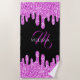 Dripping Sparkles Glitter Pink Black Monogram Beach Towel
