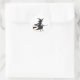 A flying witch silhouette proudly proclaiming, Oh yes, I can drive a stick!" A poke at the guys who think women can't drive a manual transmission. Plus it's just witchy fun.