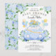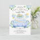 Drive by baby shower design featuring a blue car with gifts, balloons & pretty blue flower bouquet. Flip our invite over to view a coordinating floral back for an extra special touch..