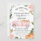 Gorgeous greenery and floral pumpkin invitation with a pink truck filled with pumpkins.