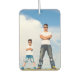 Personalised photo car air freshener for a dad's birthday with the message "Daddy, drive safe. We love you.". Double-sided with the same picture and text.