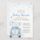 Drive Through Boy Baby Shower Blue Car Gold Invitation