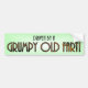 A funny bumper sticker which reads "Driven by a grumpy old fart"