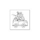 A moving cartoon car with a big-nosed driver in a baseball hat, a happy dog in the back seat, and a bunch of boxes and a cactus on its roof.